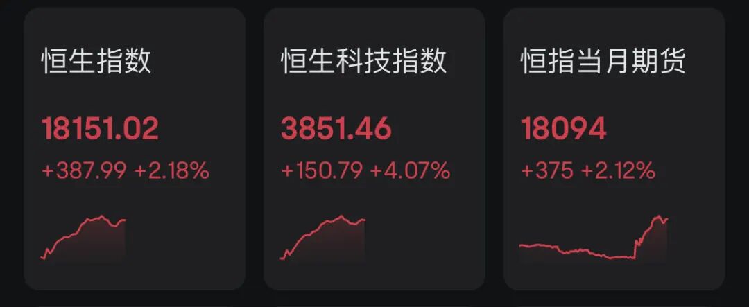 此外,几大科技网络股也均表现不俗。美团-W上涨逾8%,京东集团-SW上涨逾5%,腾讯控股上涨逾3%,阿里巴巴-SW上涨超过2%。