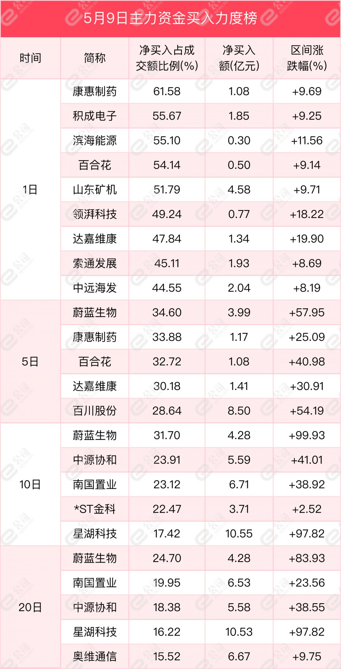 从主力资金买卖力度来看,康惠制药、积成电子、滨海能源获主力资金大力买入,净买入额占当日成交额比例分别为61.58%、55.67%、55.1%,净买入额分别为1.08亿元、1.85亿元、0.3亿元。
