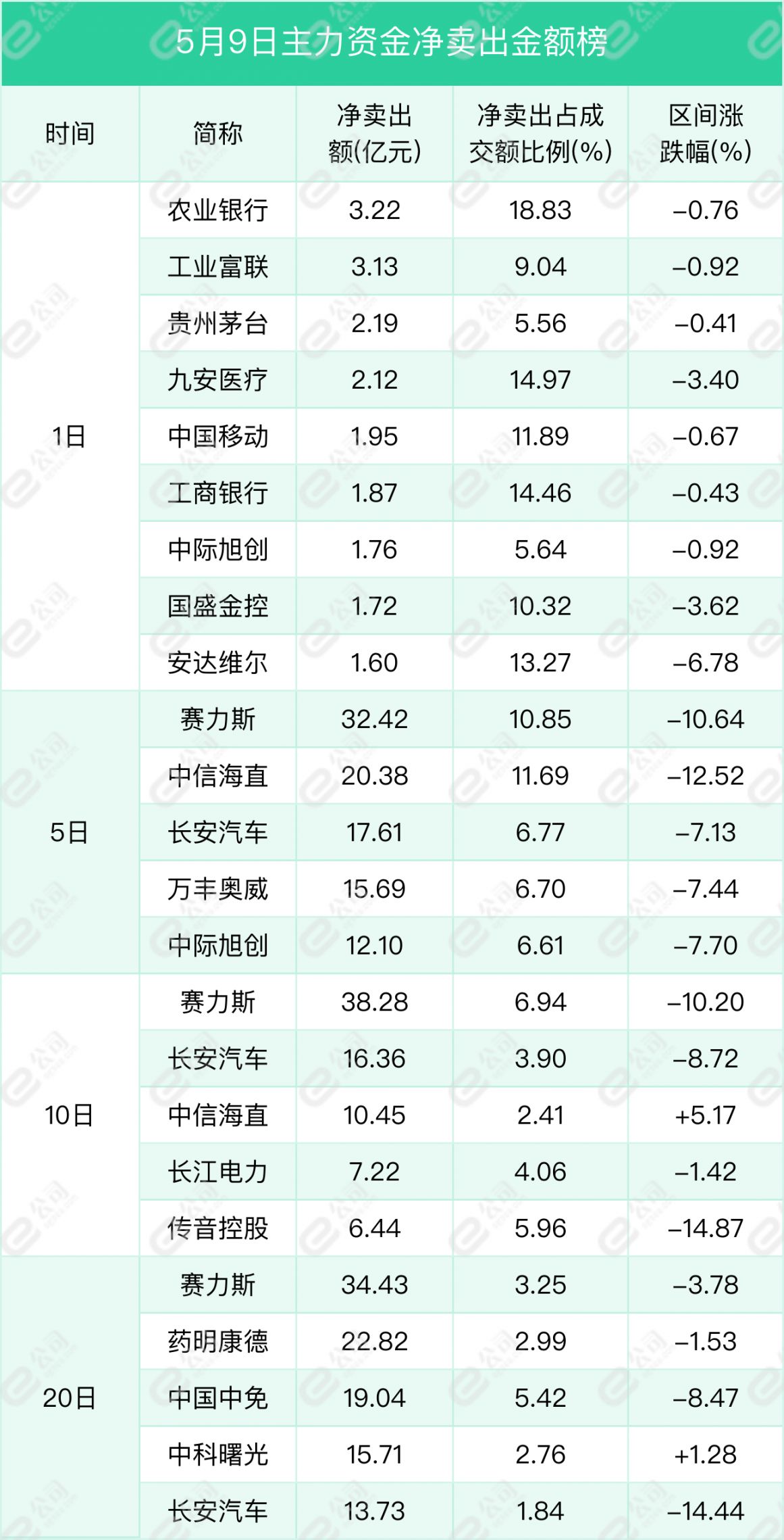农业银行、工业富联、贵州茅台获主力资金净卖出金额居前,分别为3.22亿元、3.13亿元、2.19亿元,占当日成交额18.83%、9.04%、5.56%。