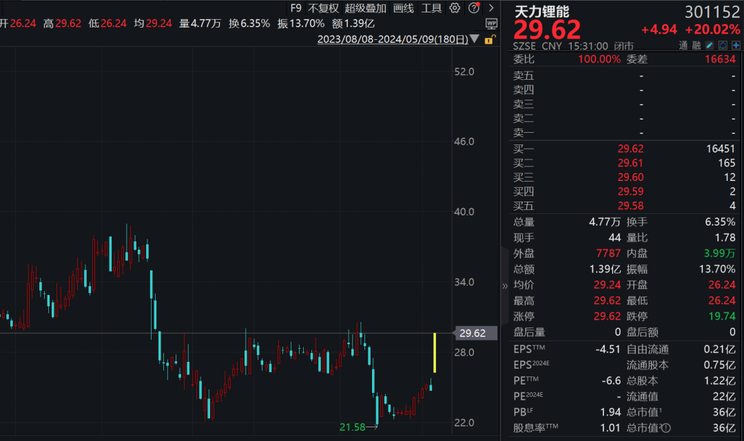 5月9日当天,新能源板块全线大涨,特别是锂电池产业链在政策利好下集体走高,天力锂能、金杨股份、蓝海华腾、领湃科技等多股涨停。