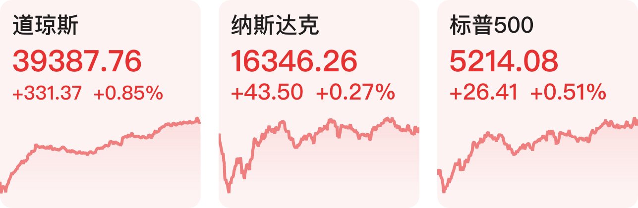 美股三大指数全线上涨。截至收盘,道琼斯指数涨0.85%,实现七连涨,纳斯达克指数涨0.27%,标普500指数涨0.51%。大型科技股全线上涨,苹果涨1%。芯片股多数下跌,英伟达跌1.84%。美股黄金股表现强劲,泛美白银涨超10%,科尔黛伦矿业涨超7%,金罗斯黄金涨超6%。热门中概股整体走强,纳斯达克中国金龙指数收涨1.64%。
