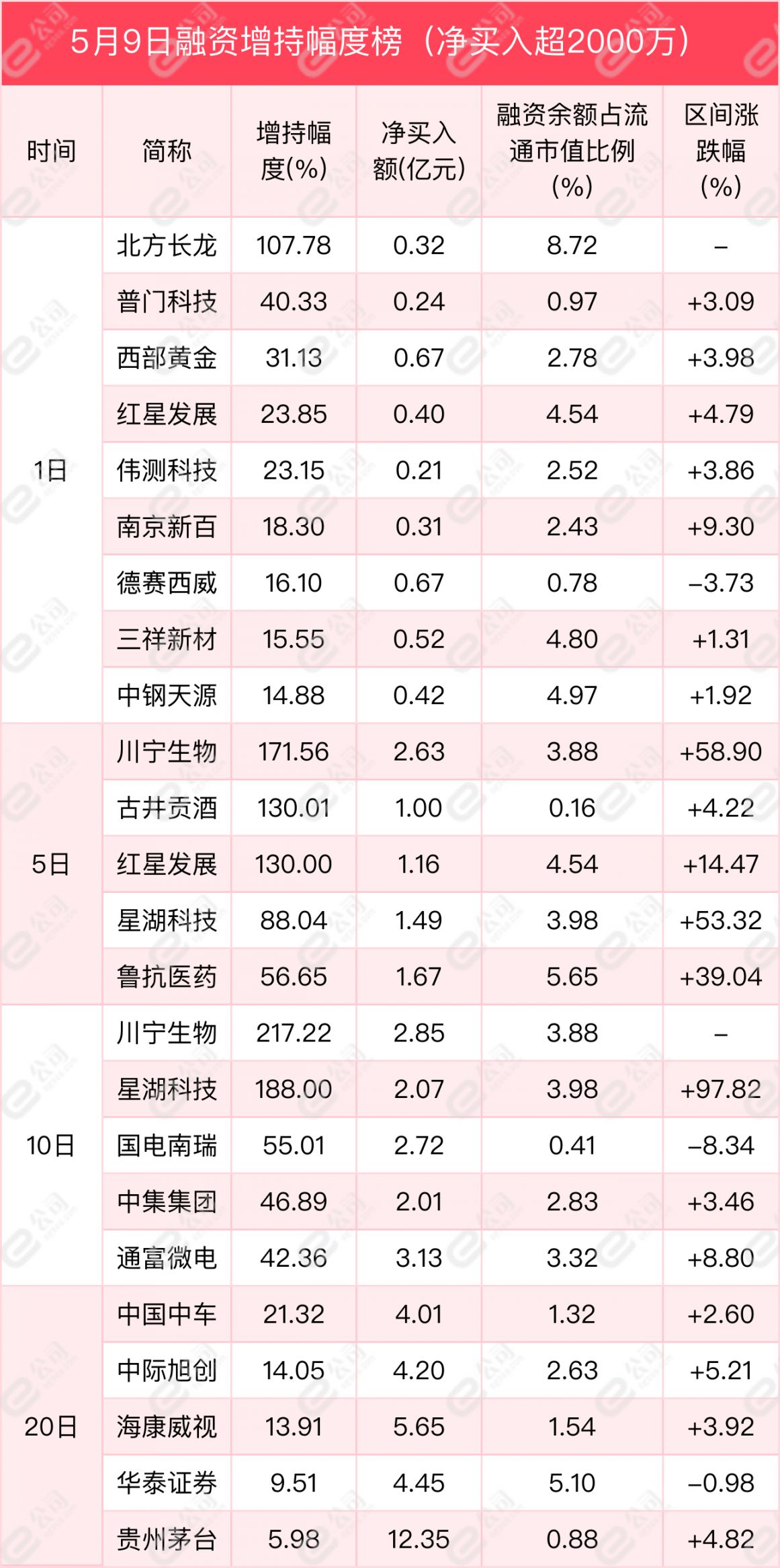 从增减持幅度来看,单日净买卖超2000万元以上的个股中,北方长龙、普门科技、西部黄金获融资增持幅度居前,分别为107.78%、40.33%、31.13%。