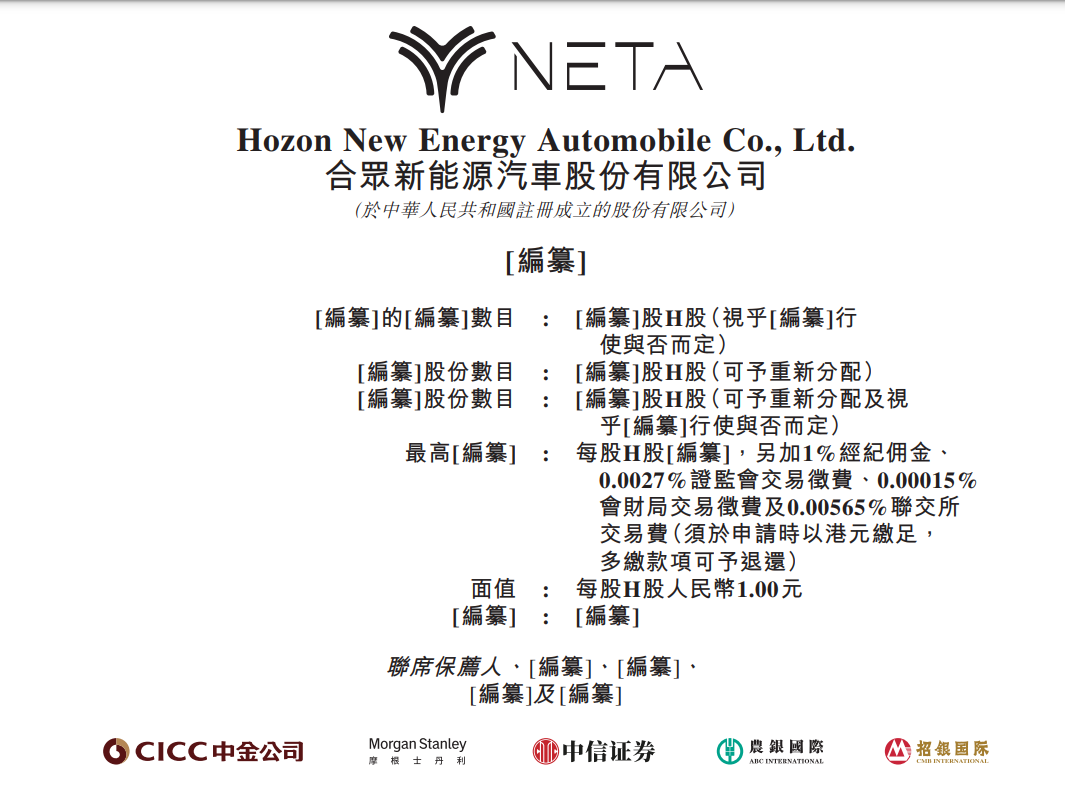 继蔚来、小鹏、理想、零跑汽车、极氪之后,哪吒汽车母公司合众新能源提交了赴港IPO申请书,中金、摩根士丹利、中信证券、农银国际、招银国际为联席保荐人。