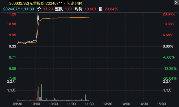 光莆股份盘中直线拉升快速20%涨停,日久光电则开盘一字涨停,沪江材料、宝明科技、光华科技等涨停或涨超10%。