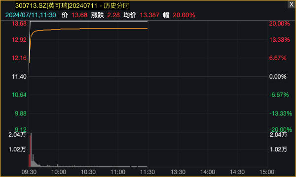 英可瑞开盘仅1分钟就垂直20%涨停,江南奕帆也仅用约5分钟直线20cm封板,春兴精工、好利科技、威领股份等均是直线快速涨停。