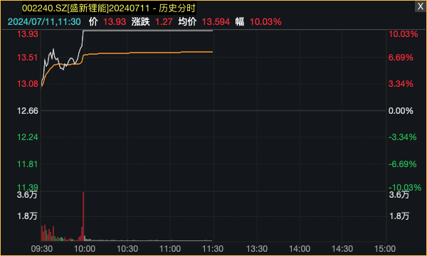 锂电池、锂矿、固态电池、钠电池等板块也强势上攻,盛新锂能、冠城大通、风华高科等批量涨停。