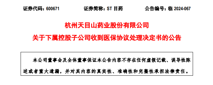 对于杭州医保中心的上述处理结果,ST目药表示,其立即成立了专项工作组,要求三慎泰门诊对发现的问题实施整改,杜绝类似事件的再次发生。同时,公司称三慎泰门诊已根据相关要求积极落实整改计划,完成整改后将根据相关规定重新申请医保定点机构。