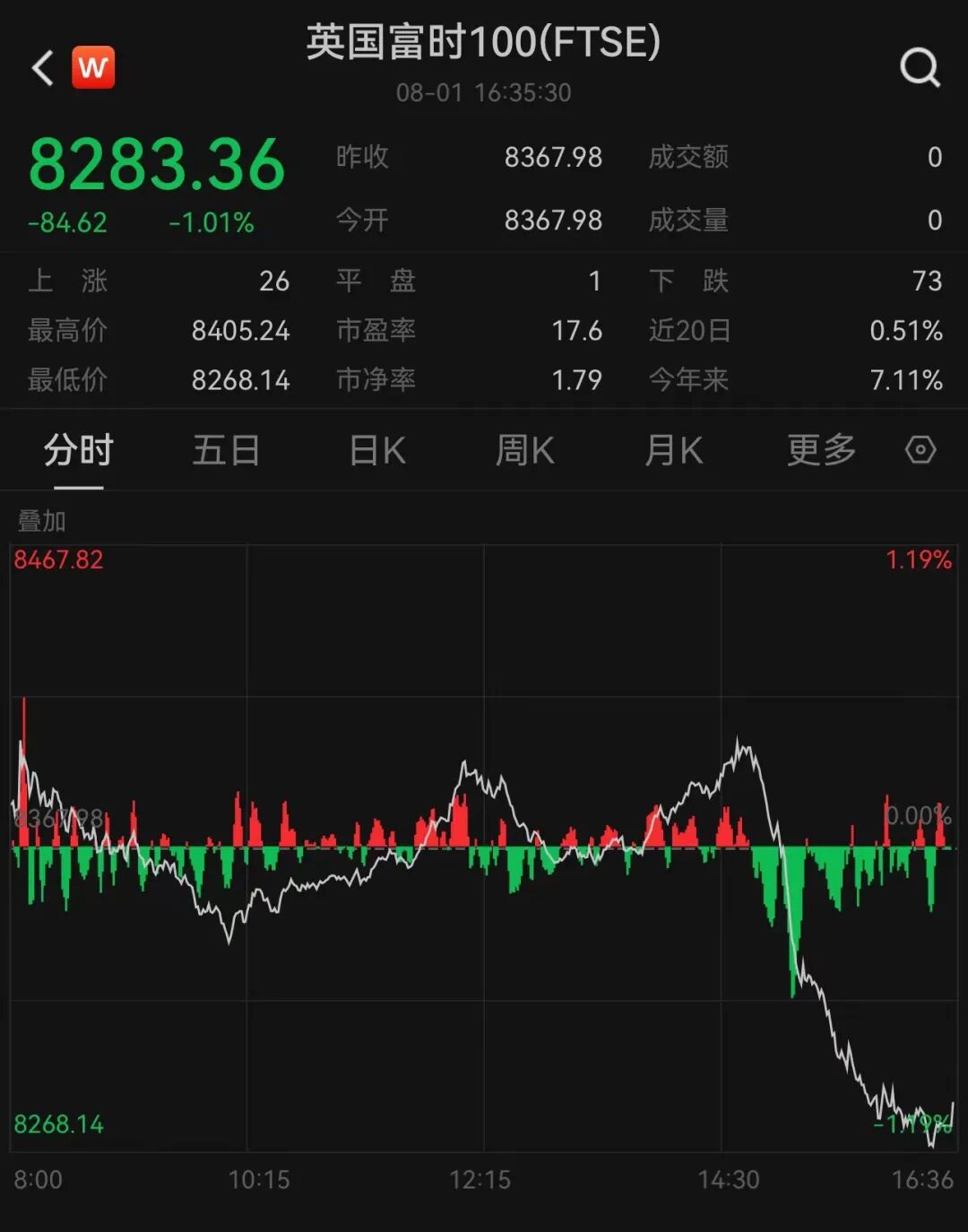 深夜,尽管英国刚刚宣布降息,也阻止不了其股市跳水。