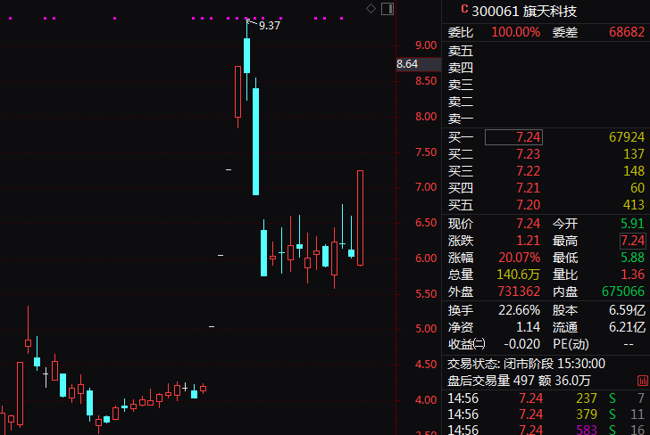 旗天科技20cm涨停,则是谐音“齐天大圣”。