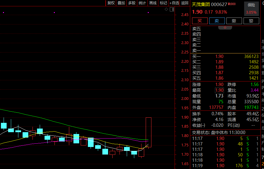 在银行股陷入调整后,非银金融接力上涨。早间,保险板块指数高开高走,一度放量大涨近4%,创10个月来新高,半日成交超昨日全天成交。板块内所有个股飘红,天茂集团仅约8分钟就垂直涨停,新华保险、中国太保等涨幅居前。