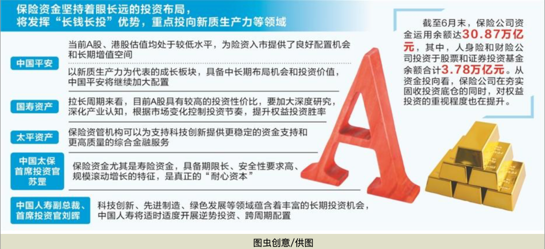 多位险资人士在接受采访时提到,将发挥“长钱长投”优势,重点投向新质生产力等领域。