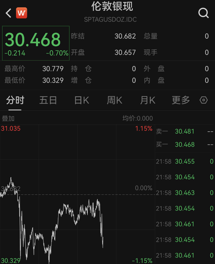 黄金与白银出现小幅跳水。
