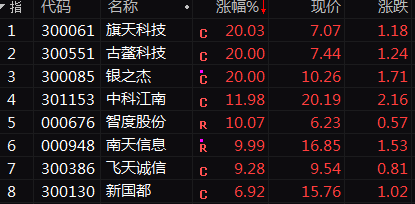 数字货币概念今日高开高走,板块指数单边上扬涨超4%,位居所有行业板块涨幅首位,成交创4个多月来新高。旗天科技、银之杰、古鳌科技等多股20%涨停,南天信息等也强势封板。