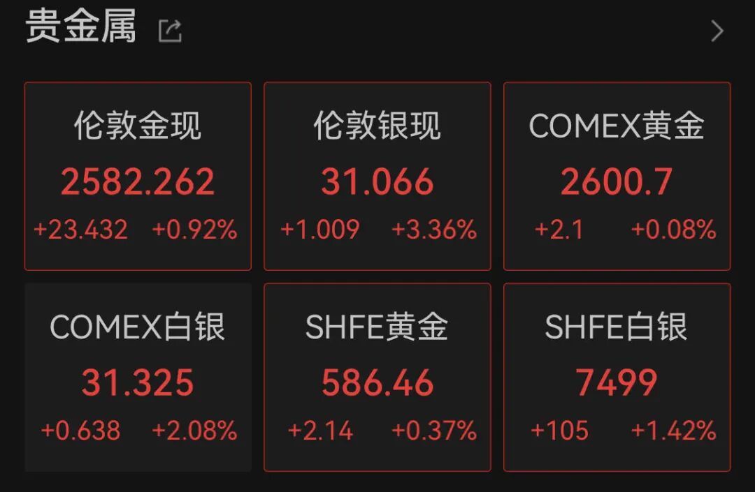 黄金、白银走势较为强劲。