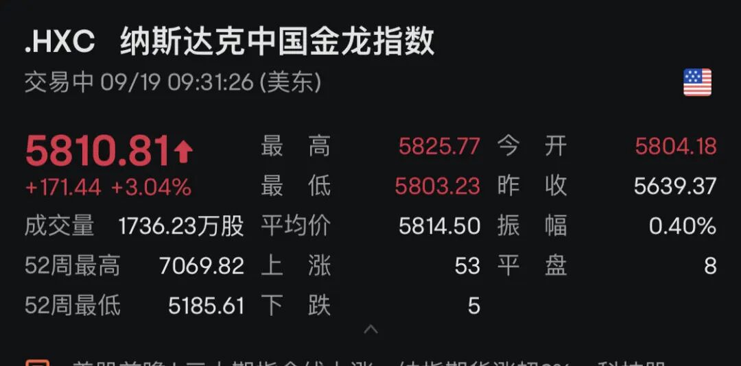 晚间,美股开盘后全线暴涨。纳斯达克中国金龙指数更是大涨超3%。中概股中,多股涨幅超5%。