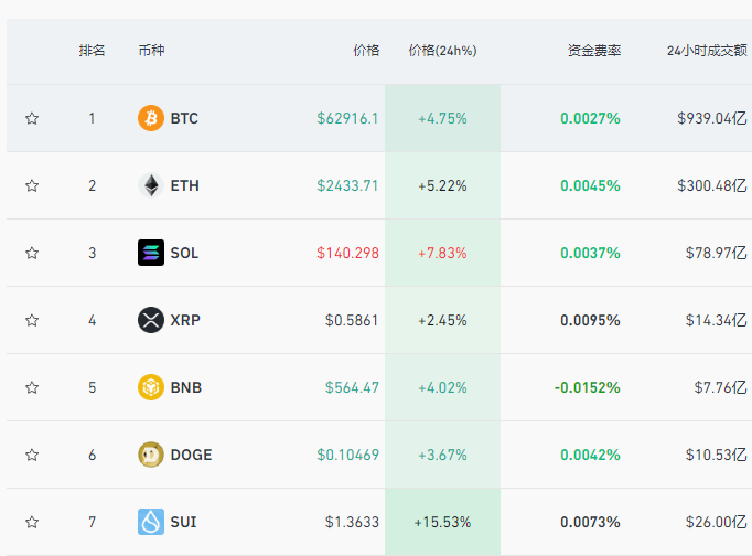 虚拟货币也全线大涨,其中比特币一度突破63000美元。