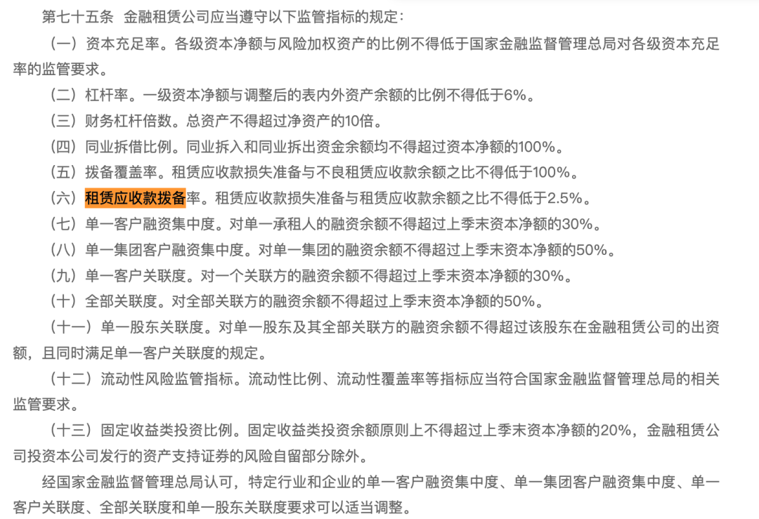 事实上,相较征求意见稿,正式文件在这方面仍有调整——进一步增加了租赁应收款拨备率和固定收益类投资比例两项监管指标。