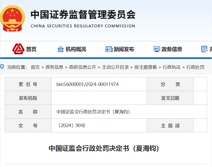 9月25日,中国证监会发布行政处罚决定书(夏海钧),夏海钧时任中国恒大集团董事局副主席、总裁,证监会决定:
