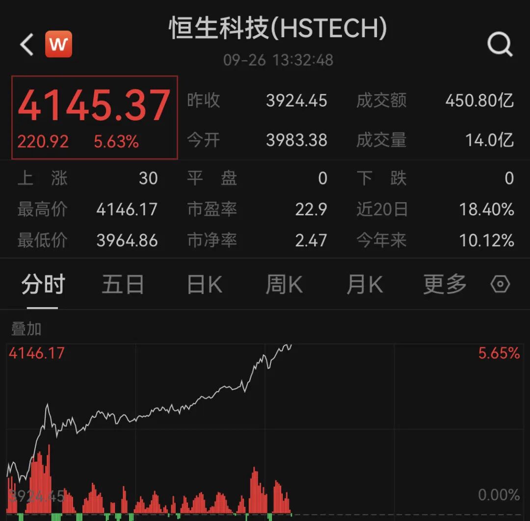 港股方面,近日表现强势的恒生指数继续拉升,其中,恒生科技指数更是大涨超5%。