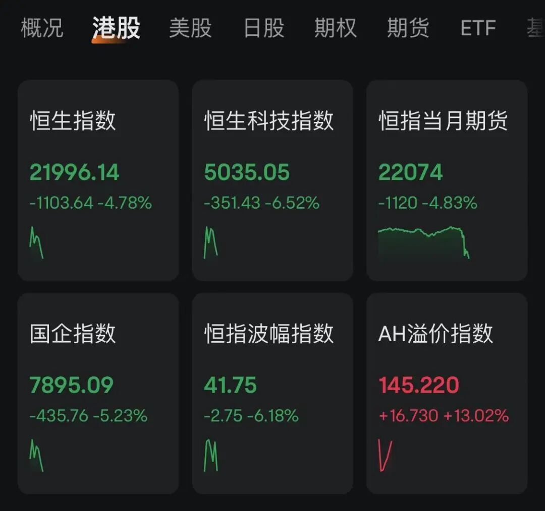 值得注意的是,在假期暴涨的港股市场今日出现跳水行情,其中,恒生指数跌近5%,恒生科技指数更是跌超6%。此外,据报道,富途交易软件出现故障,其中行业热力图不能显示。