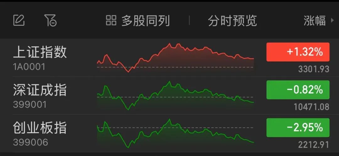 今日,A股大幅震荡,主要股指涨跌互现。白马蓝筹股占优,上证指数收复3300点,上证50涨逾2%。科技成长股有所回调,科创50指数跌逾4%,创业板指也跌近3%。两市成交2.16万亿元,较昨日萎缩超8000亿元。