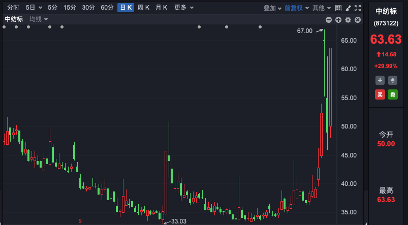 热点方面,中字头全面大涨,板块指数盘中一度放量拉升近8%。个股掀起涨停潮,中纺标30%涨停,中铁装配、中船应急、中粮科工、中建环能等批量20%涨停,中铝国际、中农联合等超20股涨停或涨超10%。