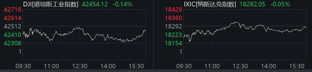 美股三大指数均小幅收跌,道指跌0.14%,纳指跌0.05%,标普500指数跌0.21%。