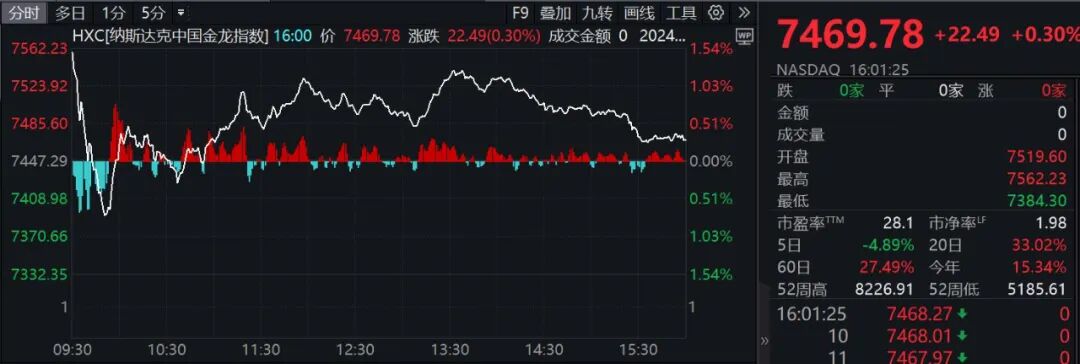 热门中概股涨跌不一,纳斯达克中国金龙指数涨0.30%。微博、腾讯音乐、阿里巴巴涨超1%,小鹏汽车、京东、百度、拼多多小幅上涨;爱奇艺跌超4%,理想汽车、富途控股跌超3%,哔哩哔哩跌超2%,网易、蔚来跌超1%。