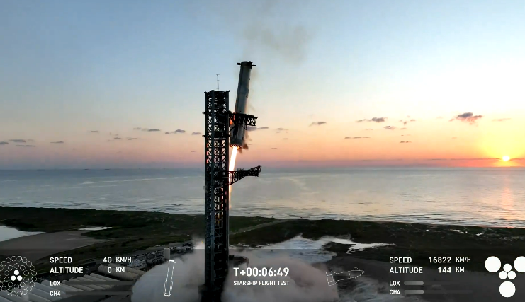 SpaceX直播画面截图 图源:SpaceX社交媒体X账号
