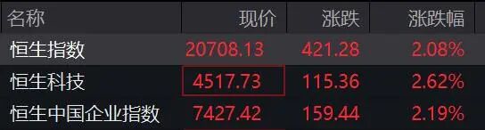 盘中恒指涨逾2%,恒生科技指数涨逾3%。