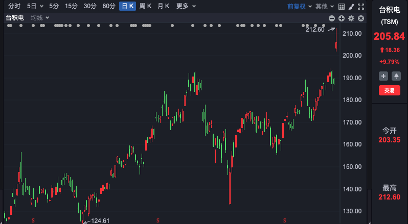 台积电第三财季的业绩和第四财季的业绩指引均超出市场预期,股价收涨9.8%,创下历史新高。