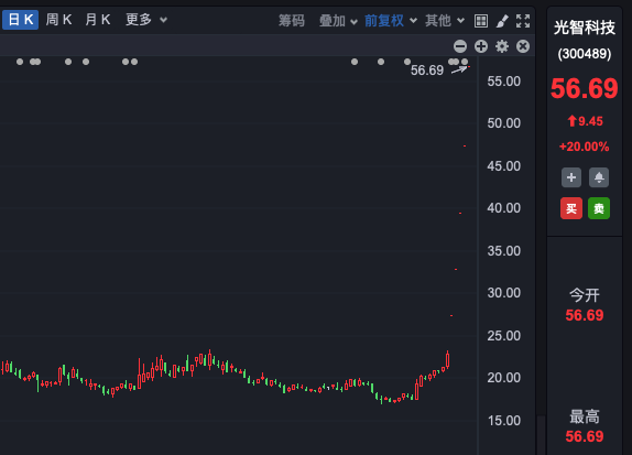 光智科技开盘一字20%涨停,连续第5日封板,富乐德也连续第2日20%一字涨停,晶丰明源、国林科技、晶华微等也纷纷20cm涨停,赛伍技术等超20股也涨停或涨超10%。