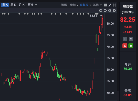 瑞芯微今日股价一度放量上涨逾5%,创1年多来新高,自9月底以来,最高累计大涨逾72%。