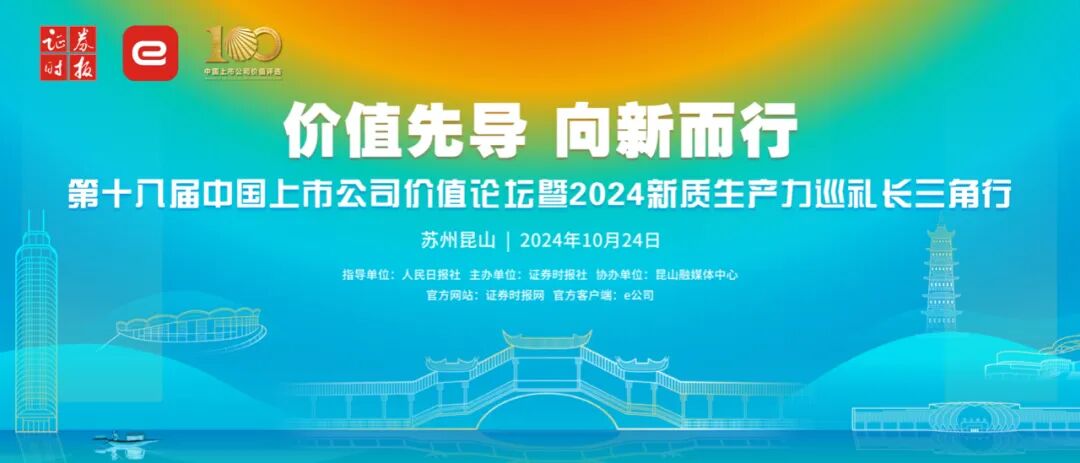 证券时报第十八届中国上市公司价值论坛暨2024新质生产力巡礼长三角行,将于10月24日至25日在江苏昆山隆重召开!