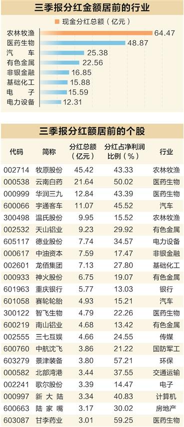 e公司讯,近年来,关于鼓励上市公司现金分红的政策陆续出台,为了切实增强投资者获得感,维护股东权益,多家上市公司积极响应,中期分红、三季报分红的公司数量较往年明显增加。据证券时报·数据宝统计,截至发稿,共有215家上市公司发布三季报利润分配预案,而去年同期仅63家,同比增长超241%。从拟分红现金总额来看,今年三季报现金分红合计超291亿元,去年同期为181.11亿元,同比增长超60%。
