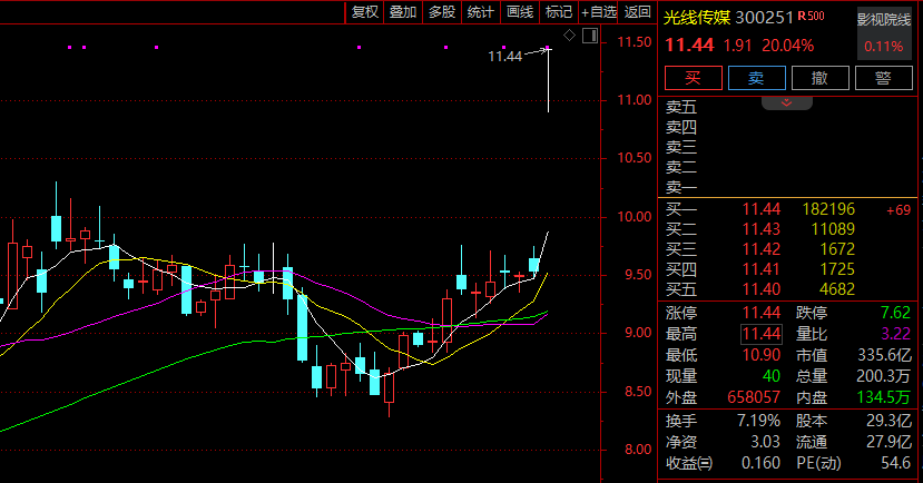 近期,光线传媒董事长王长田多次在微博播报《哪吒2》票房。受益于《哪吒2》的出色表现,2月5日开盘后,《哪吒2》的主要出品方A股公司光线传媒股价开盘后便20%涨停,封单超过19万手。