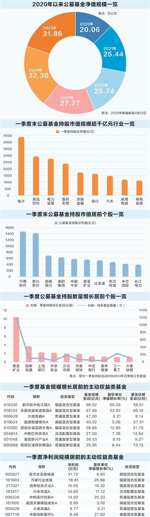 基金重仓领域和重仓个股均发生微妙变化。有色金属板块获基金增配超16亿股,专业人士强调其在关税政策、风险扰动下的配置价值。基金一季度重仓多只大消费股,显示出基金一季度对于该板块的偏好。港股市场一季度则在消费红利释放和科技产业升级驱动下迎来结构性行情,公募基金看好港股价值洼地,有的放矢进行增配。