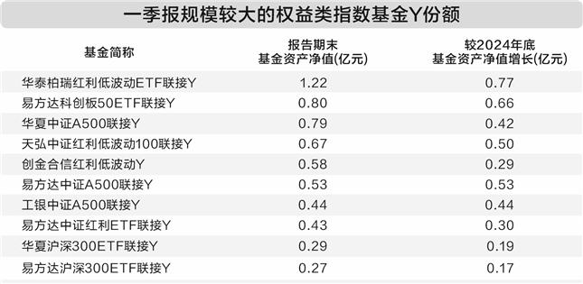 值得关注的是,红利策略正在个人养老基金Y份额中崛起。证券时报记者注意到,截至今年一季度末,首批纳入个人养老金投资目录的权益类指数基金Y份额中,多只红利类产品管理规模跻身前列,展现出显著的资金吸引力。
