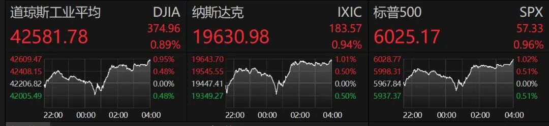 6月23日,美股三大指数集体收涨,标普500指数涨0.96%,纳指涨0.94%,道指涨0.89%。
