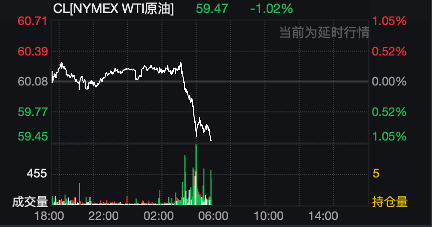 12月8日,国际原油期货价格突然直线跳水。WTI原油失守60美元,最新报59.47美元/桶,跌幅为1.02%。