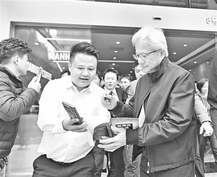 在深圳,手拿《英伟达之道》的读者得到了黄仁勋的签名。宋春雨/摄
