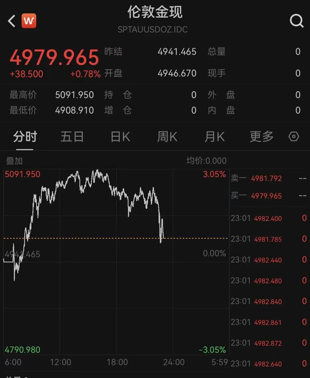 黄金与白银波动幅度加大,现货黄金在今日(2月4日)盘中一度逼近5100美元,截至发稿回落至5000美元下方。