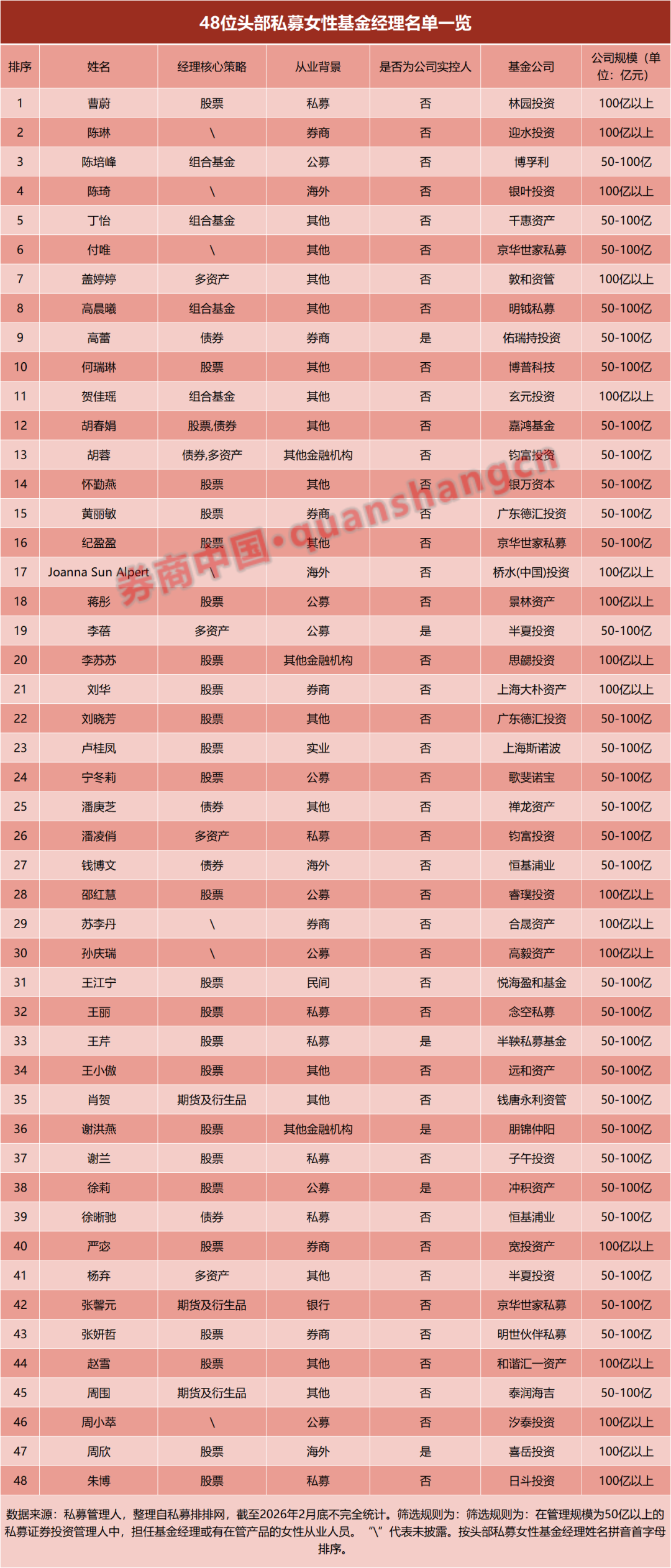 这意味着,越来越多女性不仅参与投资管理,也开始主导机构的整体发展战略。从募资、投研体系建设到团队管理,女性创始人在私募行业的影响力正在逐步扩大。