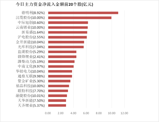 4.德明利主力资金净流入10.99亿元居首