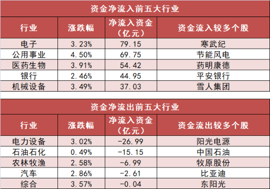 3. 电子行业净流入79.15亿元居首