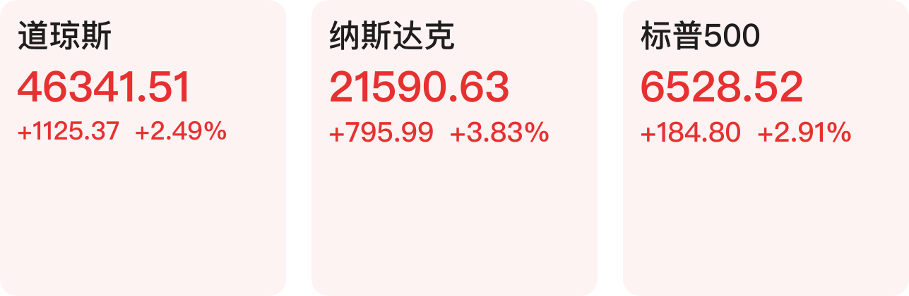 3月31日,美国三大股指大幅收涨,道指涨2.49%,标普500指数涨2.91%,纳指涨3.83%。大型科技股普遍反弹,Meta涨超6%,谷歌涨逾5%,特斯拉涨超4%,亚马逊、奈飞、微软涨超3%,苹果涨超2%。芯片股方面,闪迪、ARM、意法半导体涨超10%,希捷科技涨逾8%,西部数据、英特尔涨超7%,英伟达、博通、阿斯麦涨超5%,美光科技涨近5%。热门中概股集体上涨,纳斯达克中国金龙指数涨2.8%,蔚来涨超9%,爱奇艺涨超6%,百度、哔哩哔哩涨超4%,阿里巴巴、小鹏汽车、京东涨超2%。