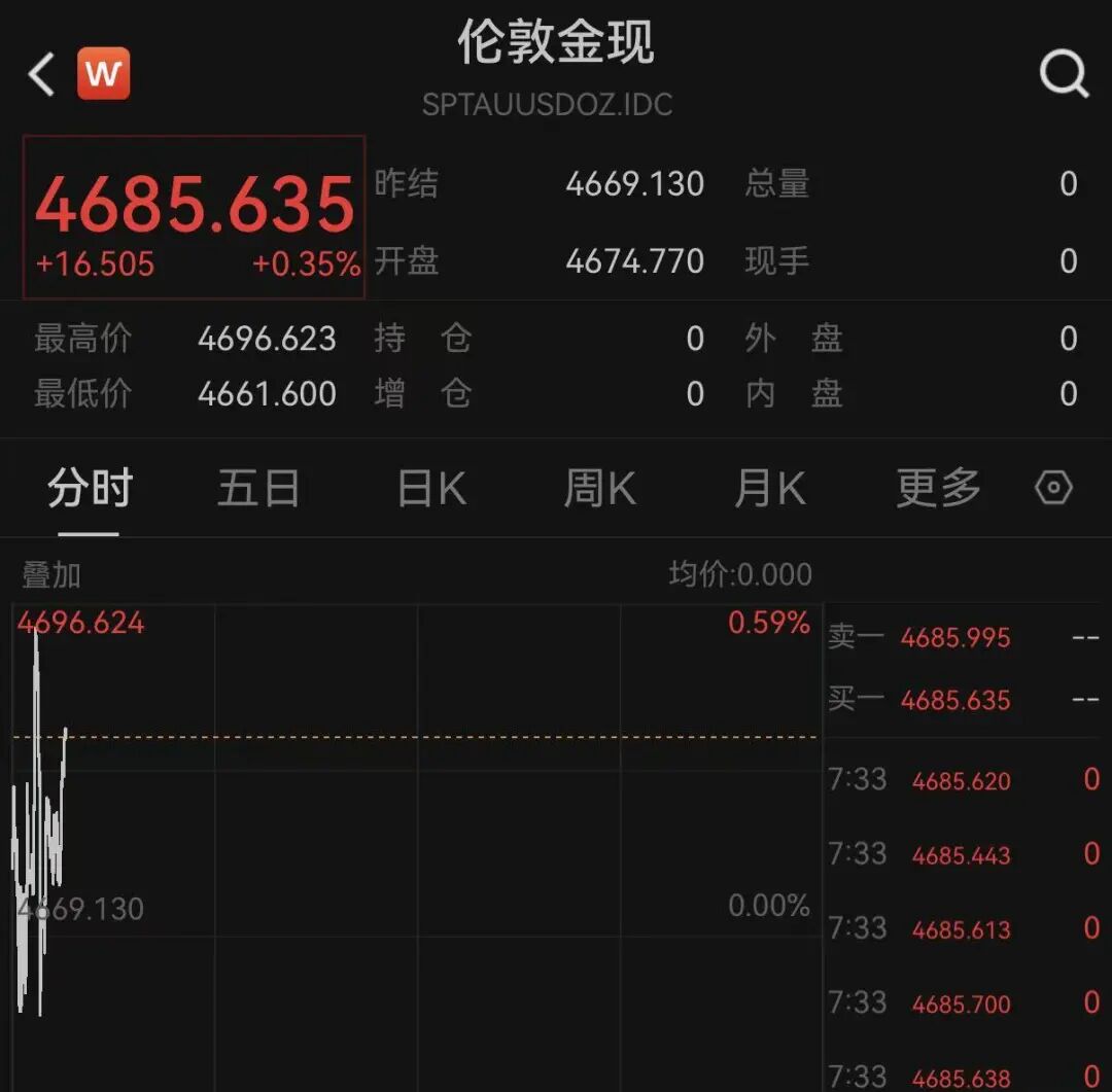 黄金与白银方面,黄金开盘涨逾0.3%,逼近4700美元,白银则跌0.1%。