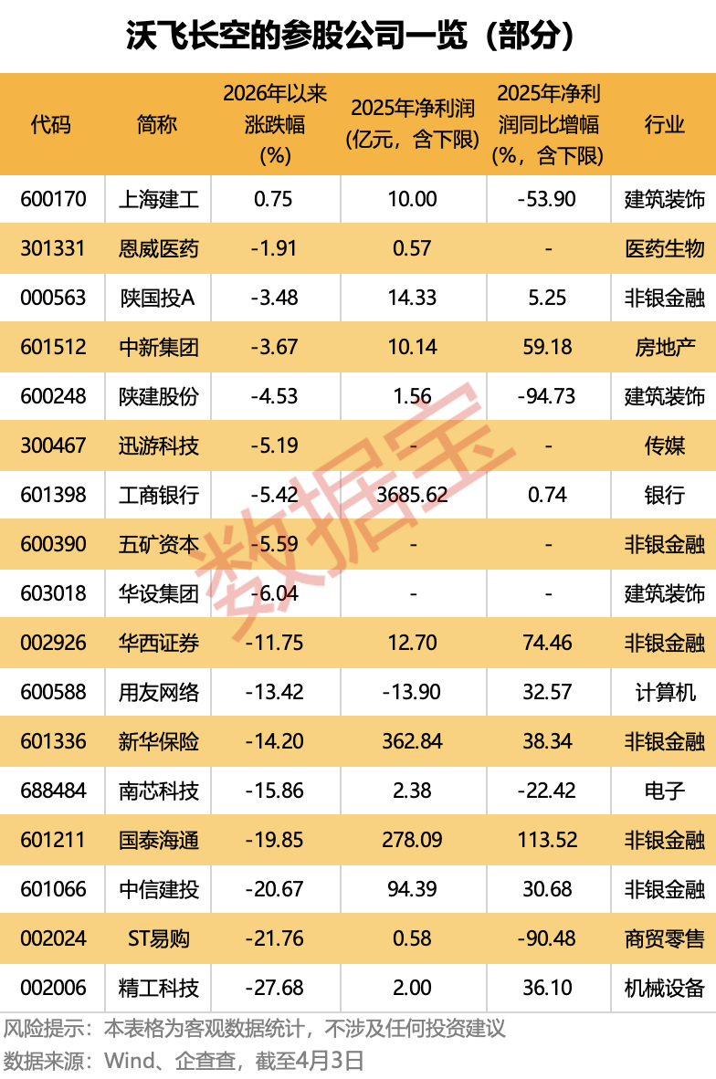 据记者不完全统计,A股市场参与投资沃飞长空的上市公司近20家,主要分布于非银金融、建筑装饰、计算机、电子、传媒等行业。