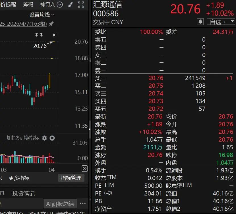 光纤概念震荡走强,汇源通信3连板,通鼎互联、华脉科技涨停,亨通光电等跟涨。