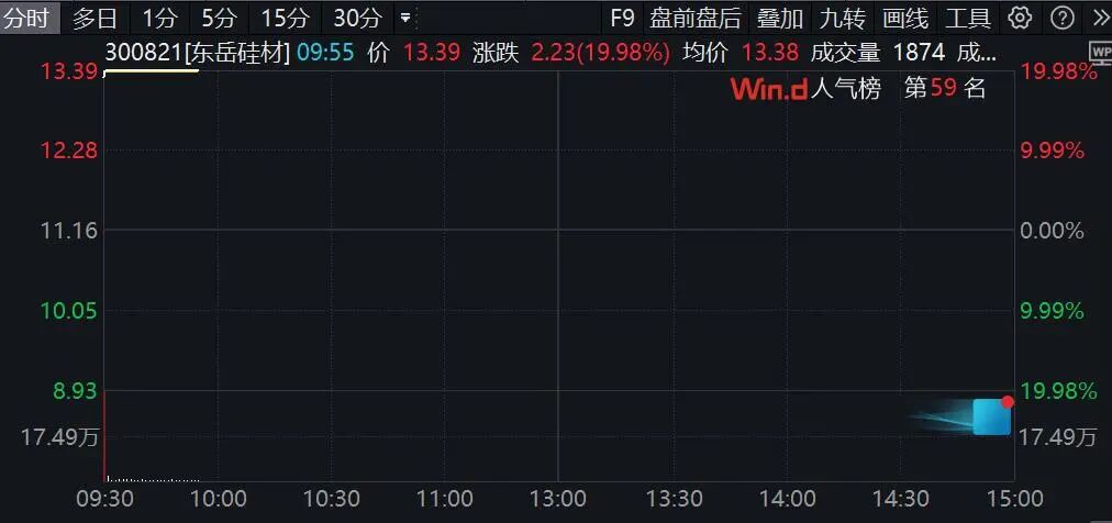 有机硅概念大涨,其中东岳硅材(300821)“20cm”涨停。
